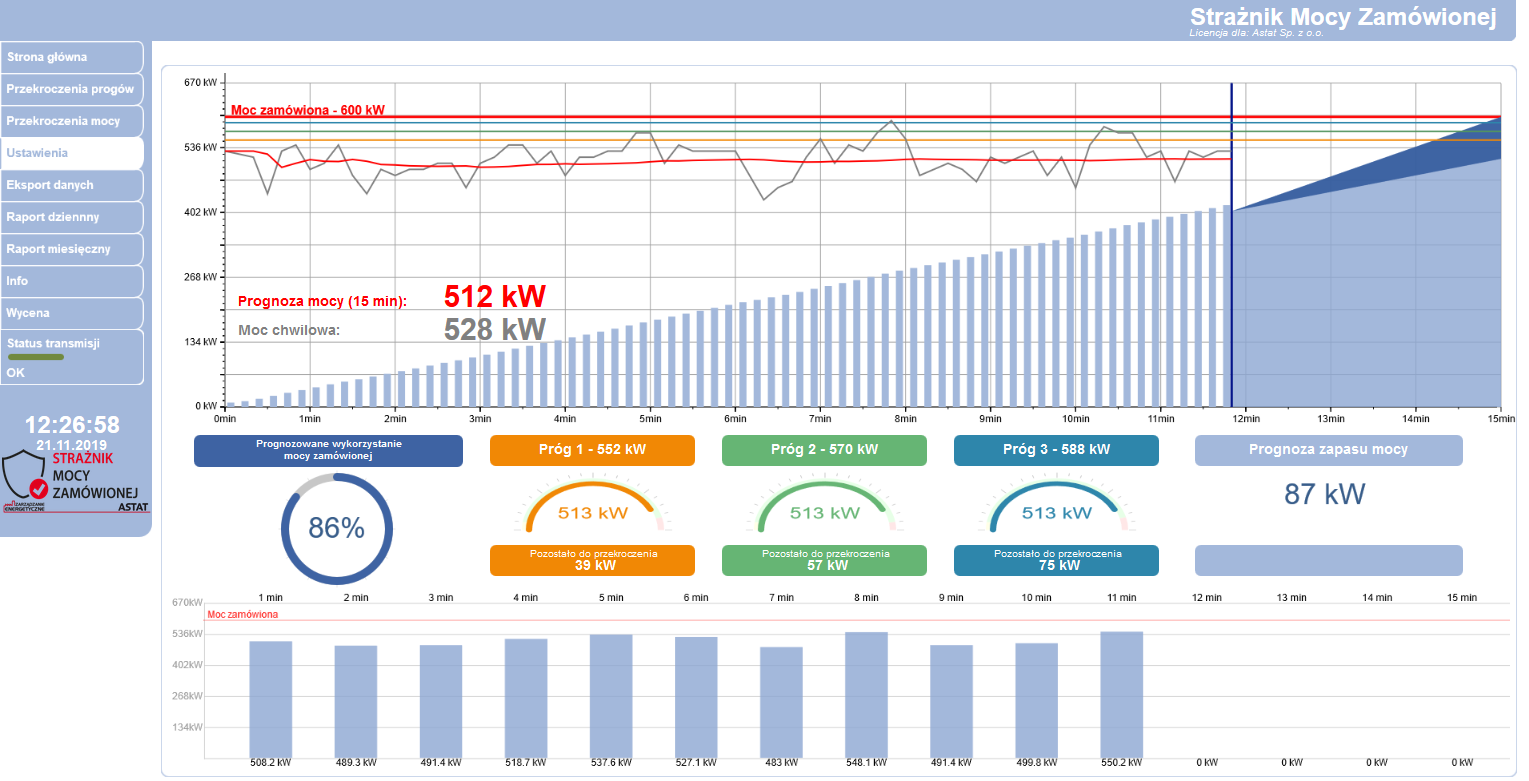 Strażnik mocy zamówionej monitoruje pobór energii w czasie rzeczywistym, analizując go w 15-minutowych okresach obliczeniowych. Dzięki temu użytkownik może przewidzieć całkowite zużycie w danym okresie i otrzymać powiadomienia o ryzyku przekroczenia ustalonego limitu. Grupa ASTAT Energetyka oferuje zaawansowane narzędzia, które ułatwiają zarządzanie energetyczne – strażnik mocy pomaga dostosować zużycie do potrzeb, minimalizując koszty.